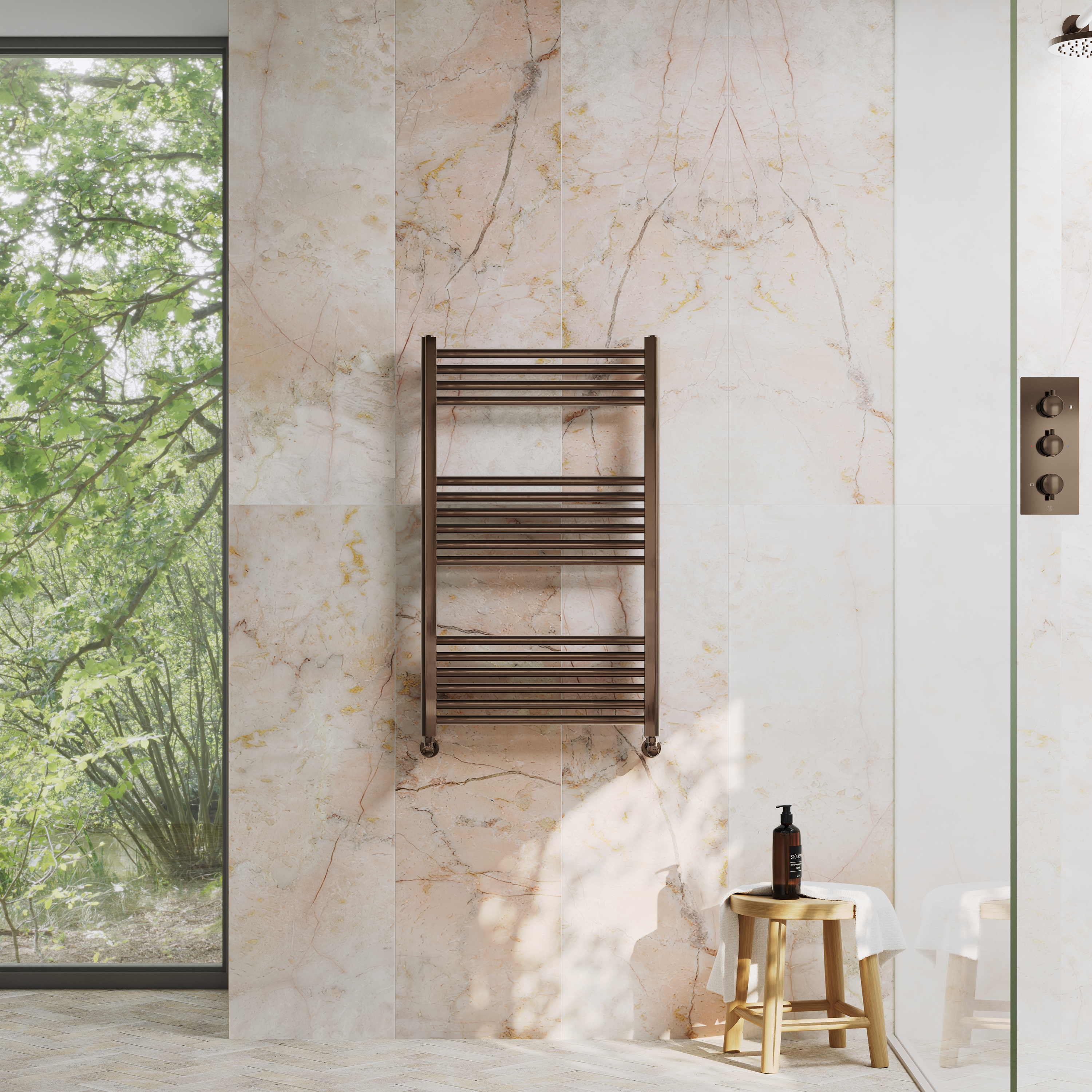 We love the Oblique because it's a bit different but still feels right at home. Inspired by the simple silhouette of a leaning ladder, giving you a characterful, homely touch and plenty of space to keep your towels nice and warm. The brushed brass finish adds a soft glow to a design that’s built to be a real statement piece, bringing a sense of luxury to your bathroom and warmth you can count on.